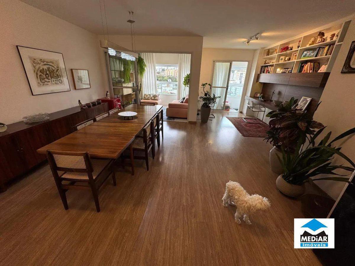 Apartamento à venda no Ipiranga com 113 m² e acabamento de alto padrão, composto por ampla sala para 03 ambientes com piso em laminado de madeira, varanda com cortina de vidro e vista, banho social com bancada em mármore Nero, armário, espelho e box em blindex, 04 quartos amplos transformado em 03 (fácil reversão), com armários planejados e piso em laminado de madeira, sendo 01 suíte com Closet, banho da suíte com bancada em mármore Nero, armário, espelho e box em blindex, cozinha planejada com armários, área de serviço independente e banho de empregada.