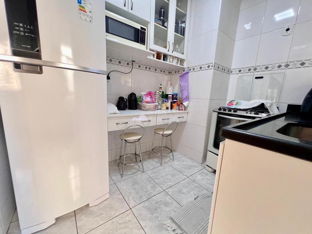 Cozinha com bancada em granito, cuba da pia embutida e armários;