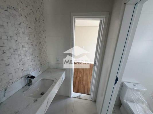 ¿ Sala ampla para três ambientes com piso em porcelanato e lavabo, proporcionando sofisticação e conforto.