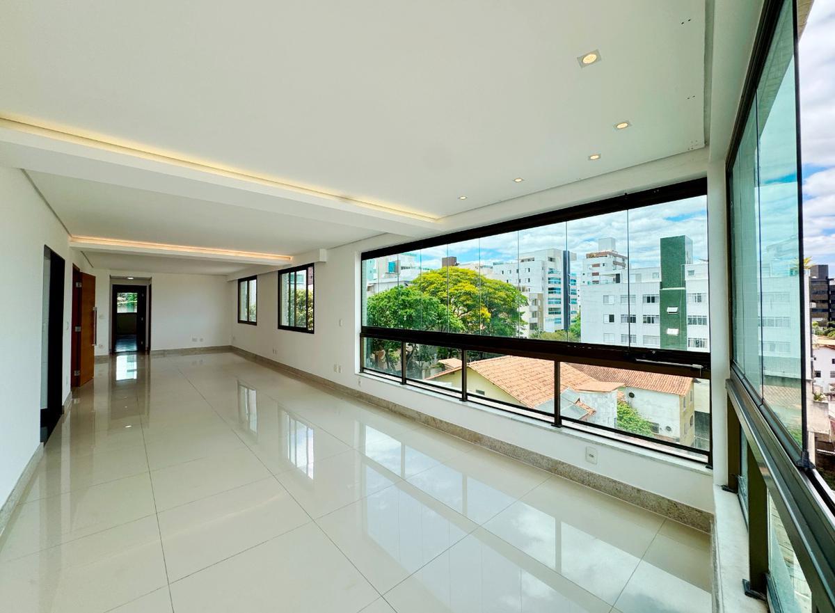 4 QUARTOS, sendo 2 SUÍTES, ambos ricos em armários, piso em laminado de madeira, janelas com venezianas, luminárias. Roupeiro no corredor. SALA ampla para 3 ambientes com 50m2, rebaixamento em gesso com iluminação ambiente. Amplas janelas que permitem uma LINDA VISTA DEFINITIVA para a reserva da UFMG, piso em porcelanato marfim e LAVABO. COZINHA ampla, bancadas e piso em granito preto São Gabriel, armários, bancada de apoio em vidro. Área de serviço com DCE (despensa com prateleiras) e banheiro.