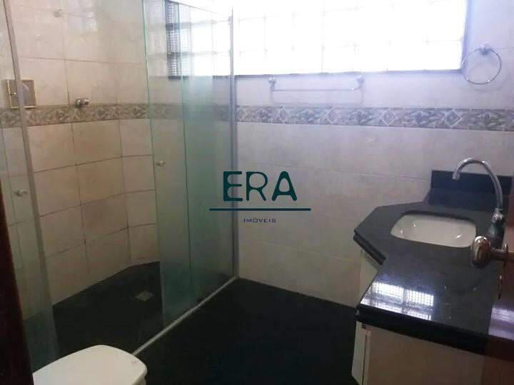 Banheiro social e suíte com bancada em granito, box em blindex e espelhos