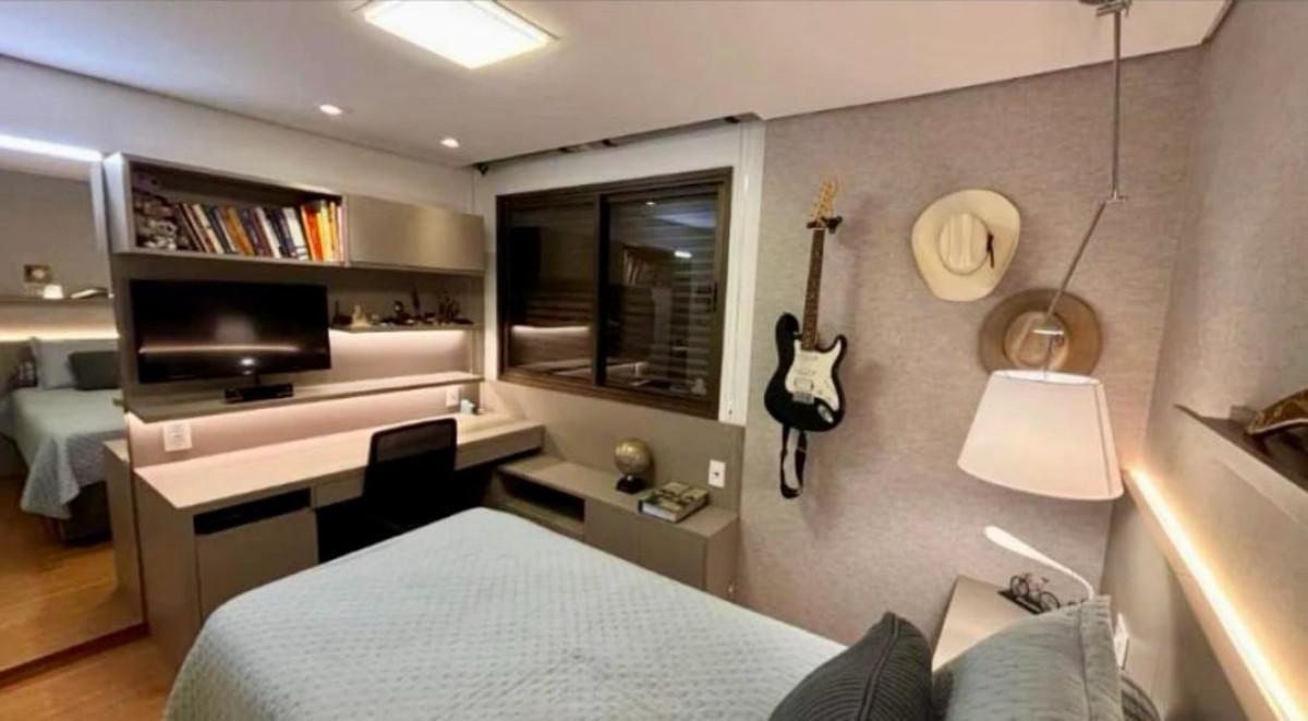 3 suítes , armários de alto padrão, ar condicionado, piso em madeira. Suíte master com banheira de hidromassagem , aquecimento para toalhas. O apartamento possui um escritório montado e decorado com marcenaria e armários.