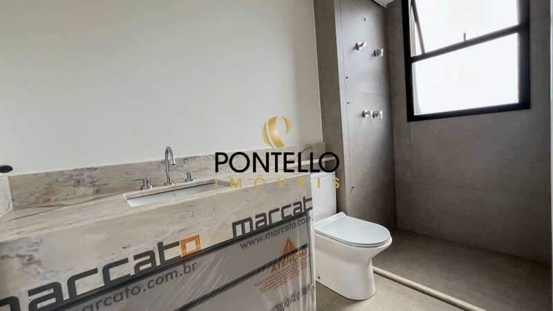 4 Quartos amplos com piso em porcelanato, sendo duas suítes com bancada em granito