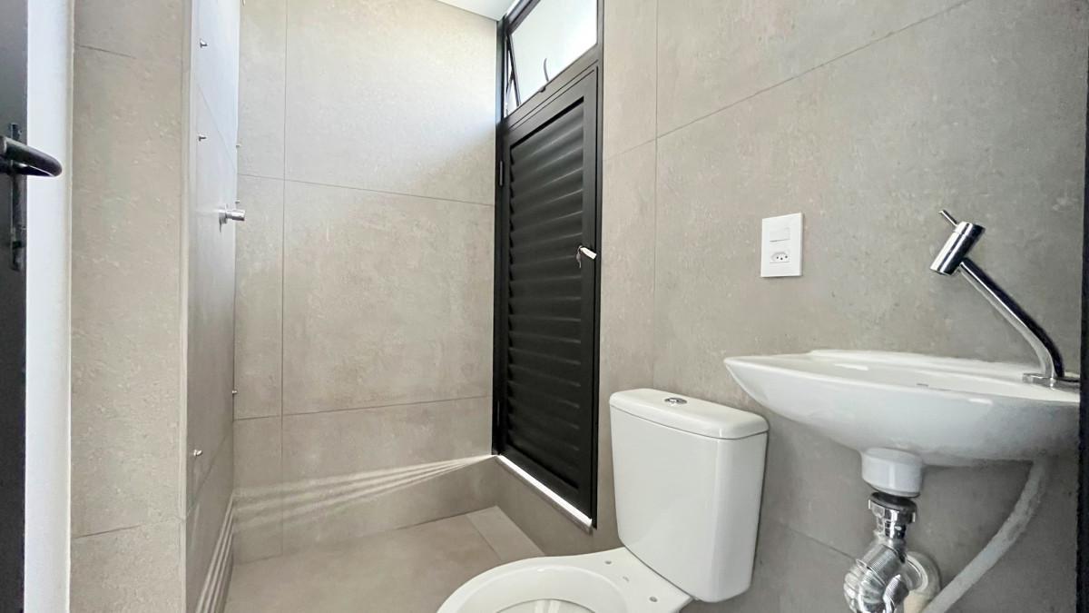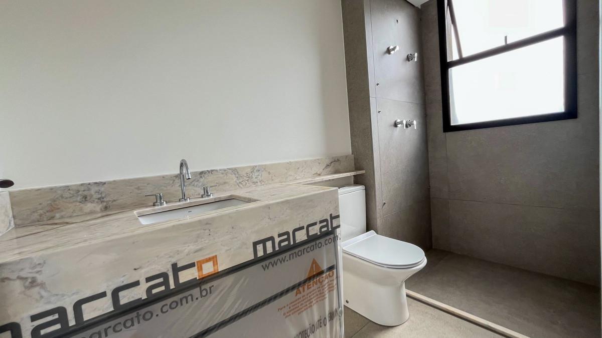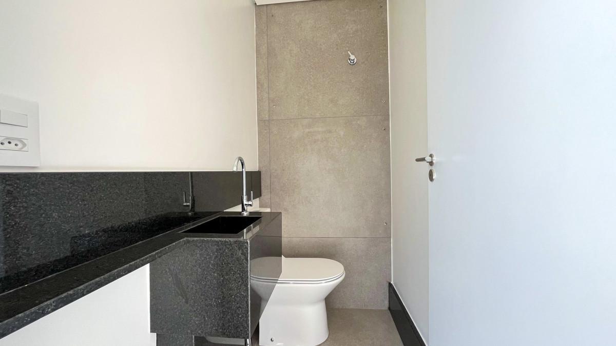 Banheiro social com bancada em mármore