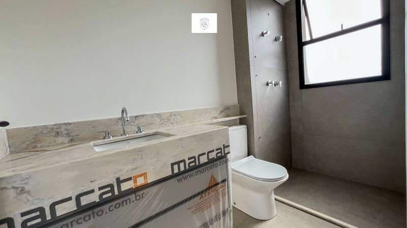 Banheiro social com bancada em mármore