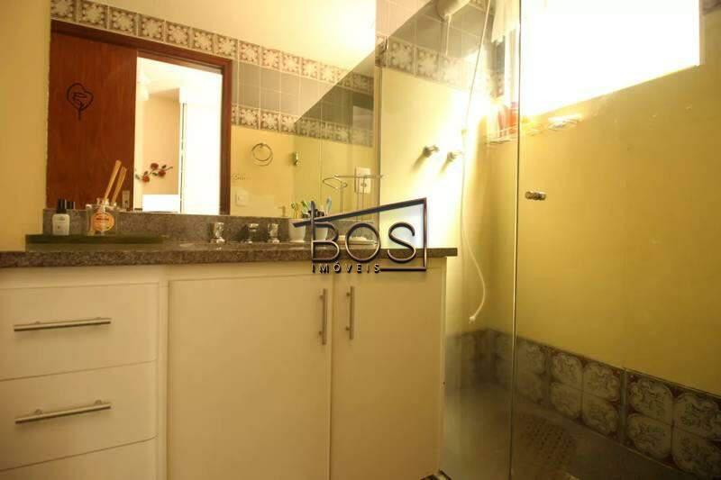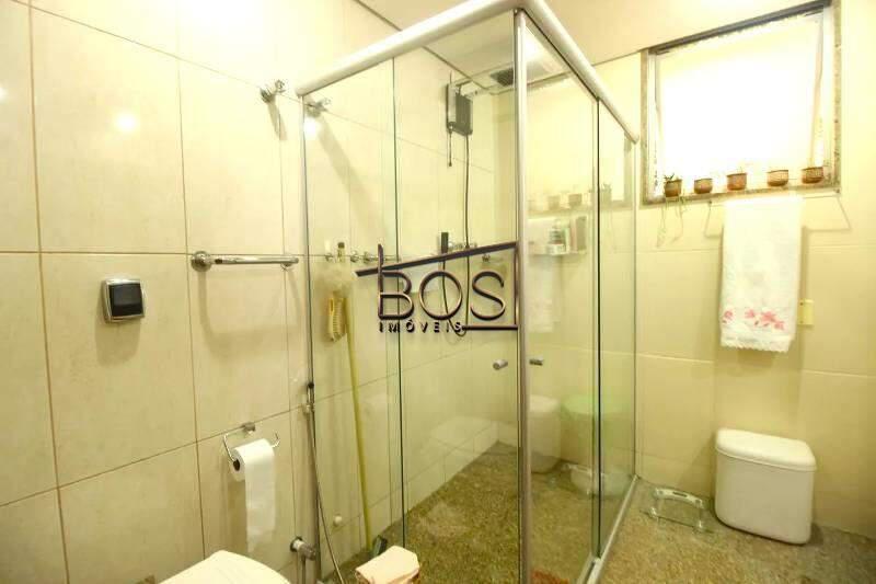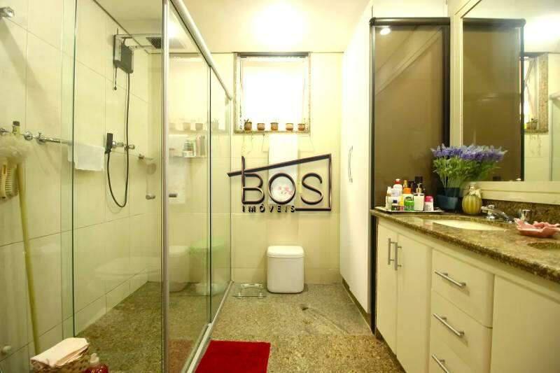 - Banheiro social com bancada em granito, espelho, armários e box em blindex