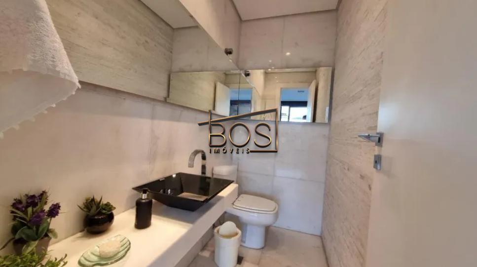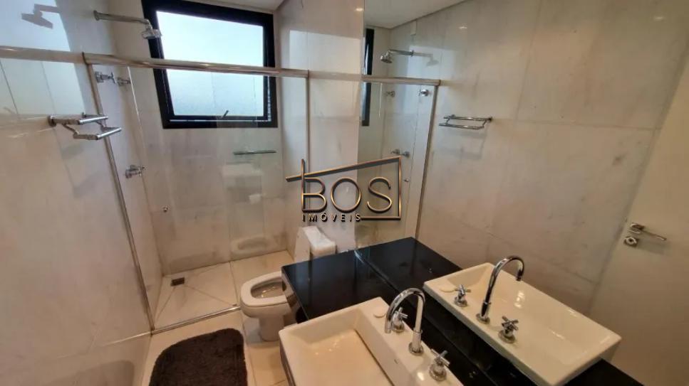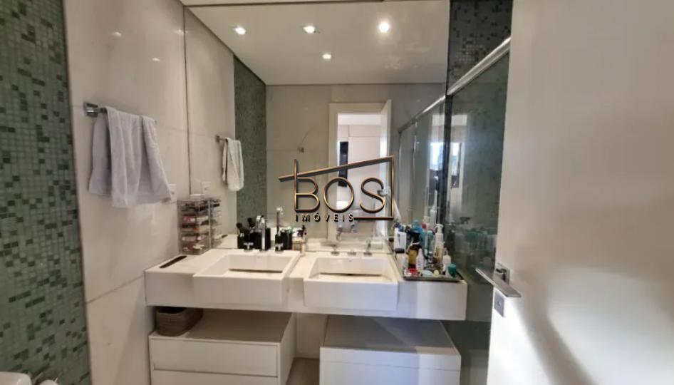 Os banheiros das suítes e o social contam com box, armários e espelhos, mantendo padrão de acabamento elegante.