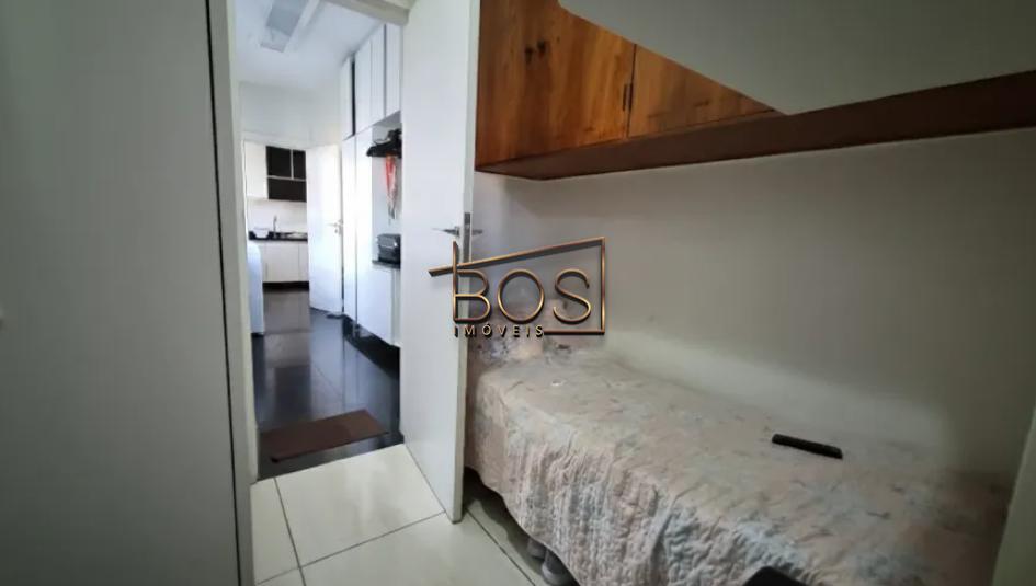 Cozinha é planejada, equipada com armários, coifa, bancadas em granito e espaço para refeições. A área de serviço é independente, com boa área de apoio, despensa e dependência completa de empregada (DCE).