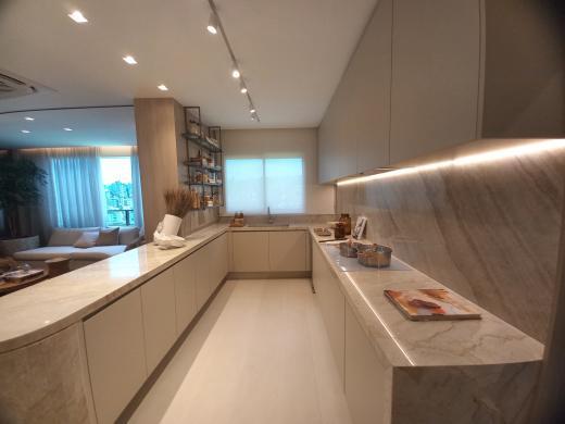Sala ampla facilitando layouts para varios ambientes, varanda ampla, lavabo, 02 suites uma com amplos closets, a master com closet e banho, duas semi suites, piso em laminado, banhos suites com piso e bancada em granito, cozinha com piso e bancada em granito. Despensa. Area de servico e DCE. 3 vagas de garagem para aptos tipo, 4 Vagas de garagem para aptos de cobertura.