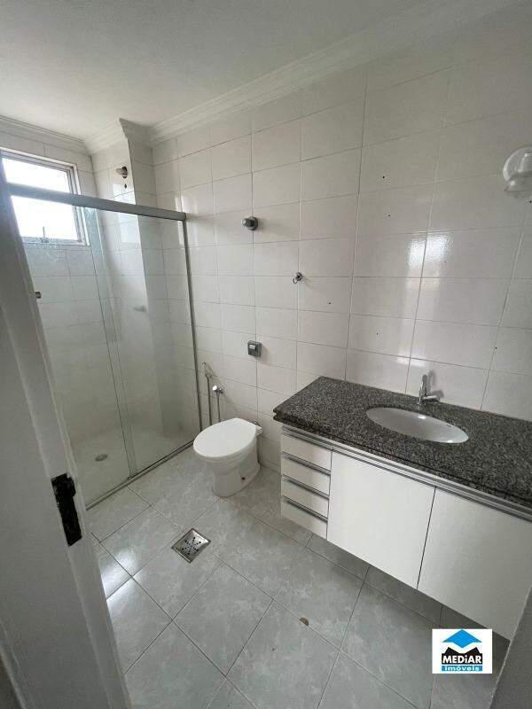 Banho social com bancada em granito, armário e box em blindex,