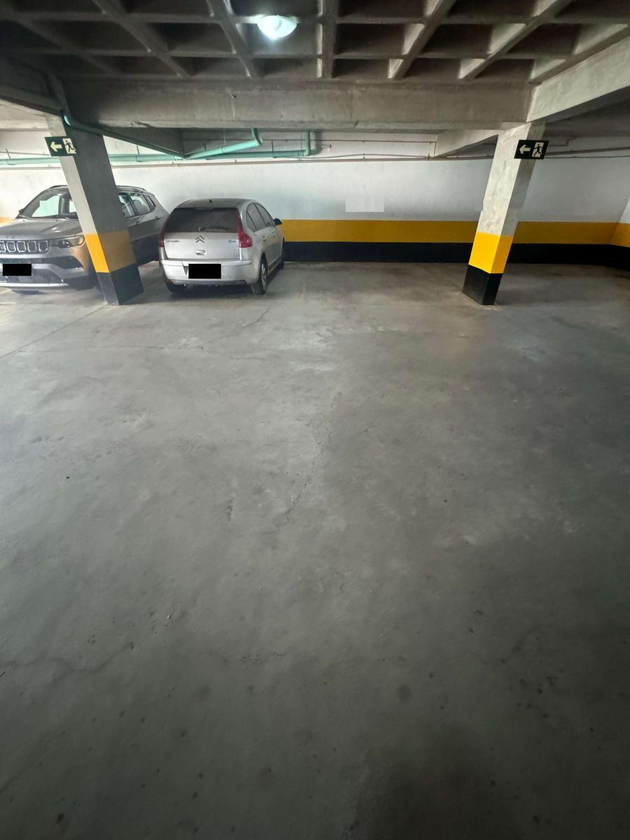 02 vagas de garagem cobertas, demarcadas e paralelas.