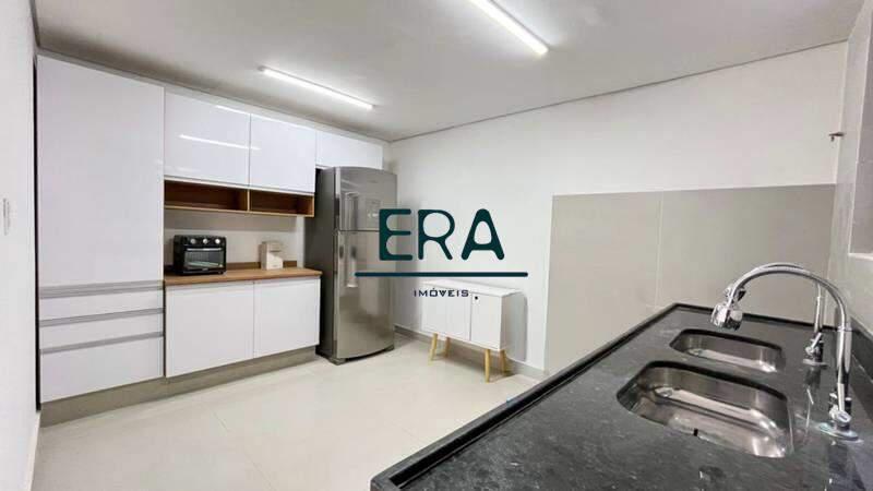 Cozinha funcional com bancada em granito, armários planejados e piso em porcelanato.
