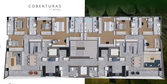 Área privativa: Unidades tipo: 162 m², Coberturas duplex: até 318 m²