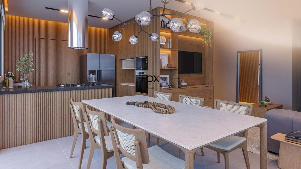 Sala para 2 ambientes, jantar e estar, lavenidaabo, 04 quartos, sendo suíte master, suíte e 2 semissuítes; cozinha americana; área de serviço, banho de empregada; 03 vagas de garagem.