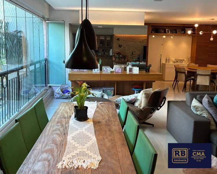 1 Sala ampla para até três ambientes, toda decorada, com piso em porcelanato, teto rebaixado, iluminação planejada e varanda