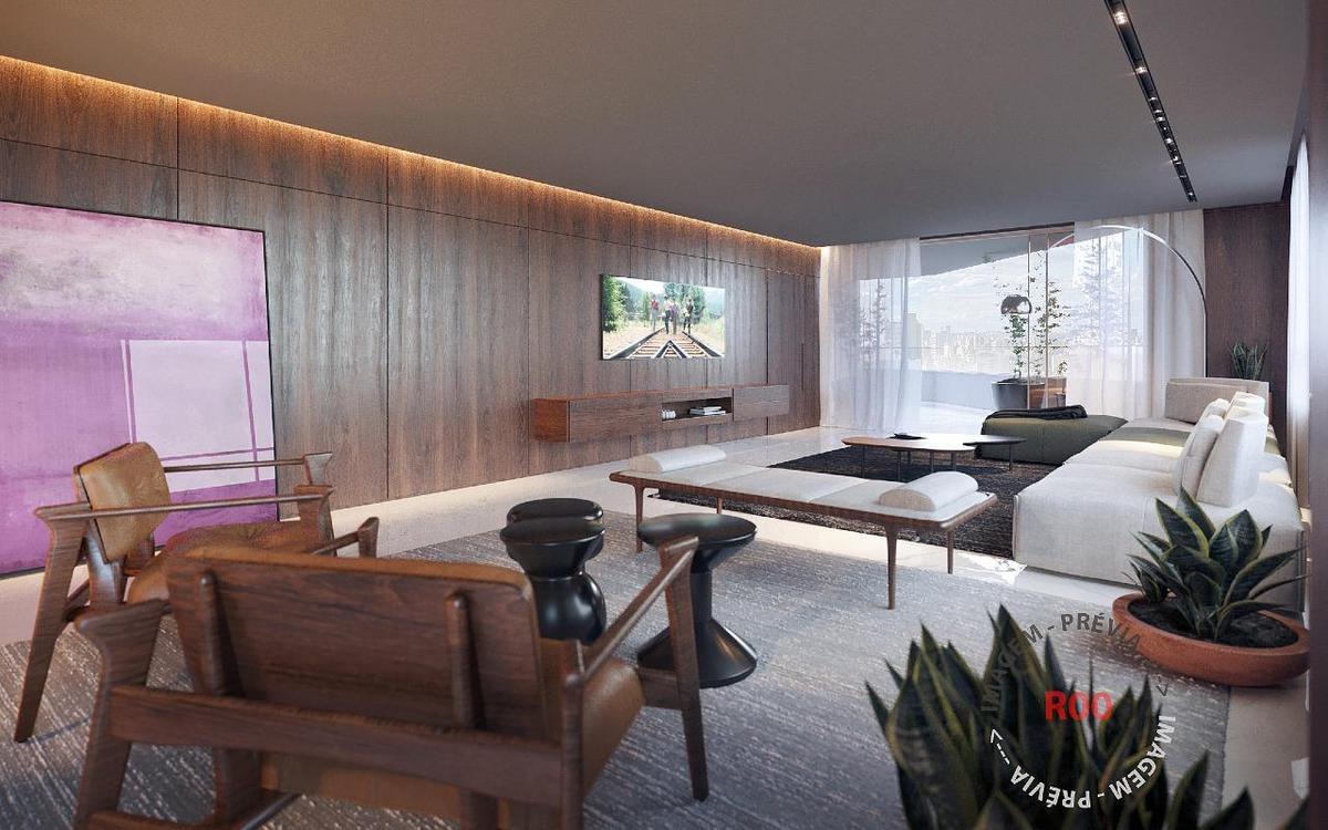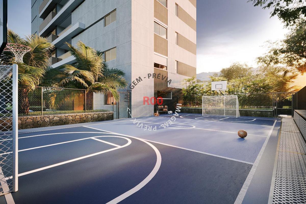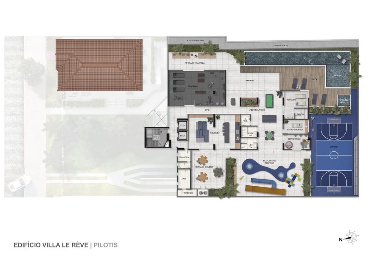 Lazer com salão de festas, espaço gourmet, piscina, quadra, sala de jogos, academia e sauna.