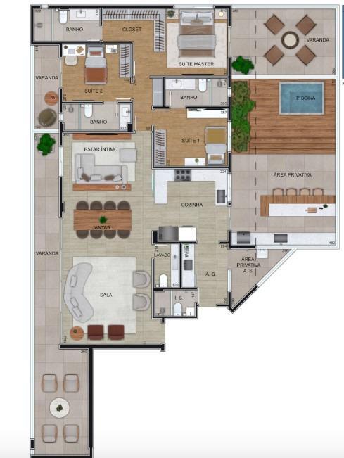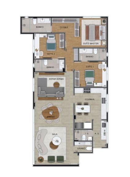 Opção sala ampliada e 3 suítes)