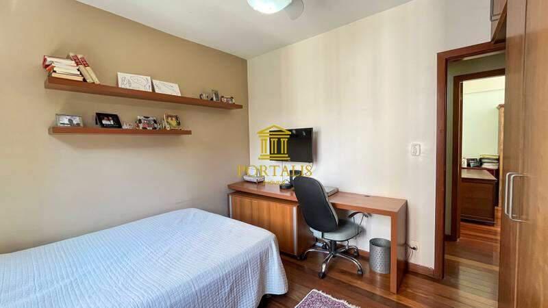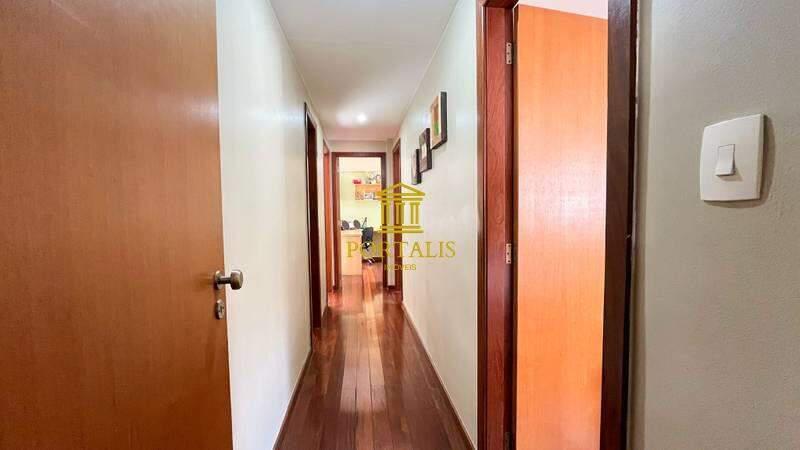4 quartos com piso em tábua corrida, sendo 3 com armários planejados e 1 suíte com espelho e box em blindex.