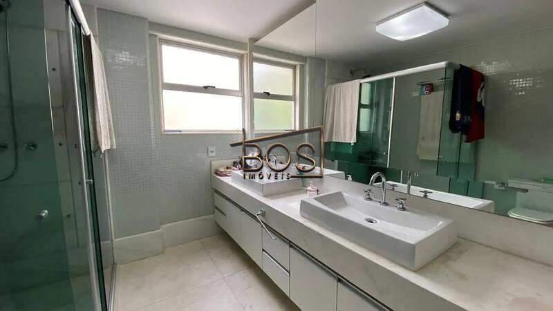 - Banhos com bancada em granito, armários, espelhos e box em blindex