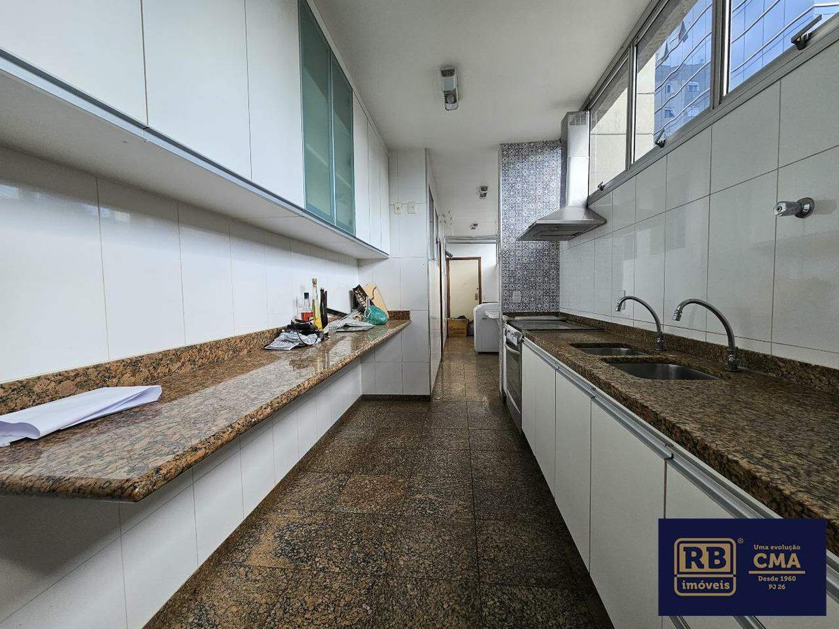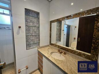 Apartamento com área de 145 m², Sala ampla para dois ambientes com piso em granito, lavabo, 4 quartos transformados em 3, sendo 1 suíte com closet, cozinha ampla com armários, piso e bancadas em granito, banho social, área de serviço independente, dependência completa de empregada.