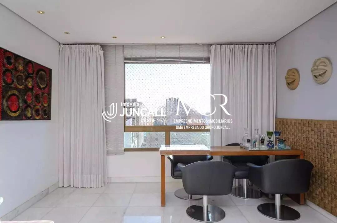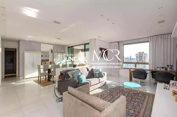 Apartamento com aproximadamente 167m² distribuídos em sala ampla para 3 ambientes com piso em mármore, lavabo e varanda.