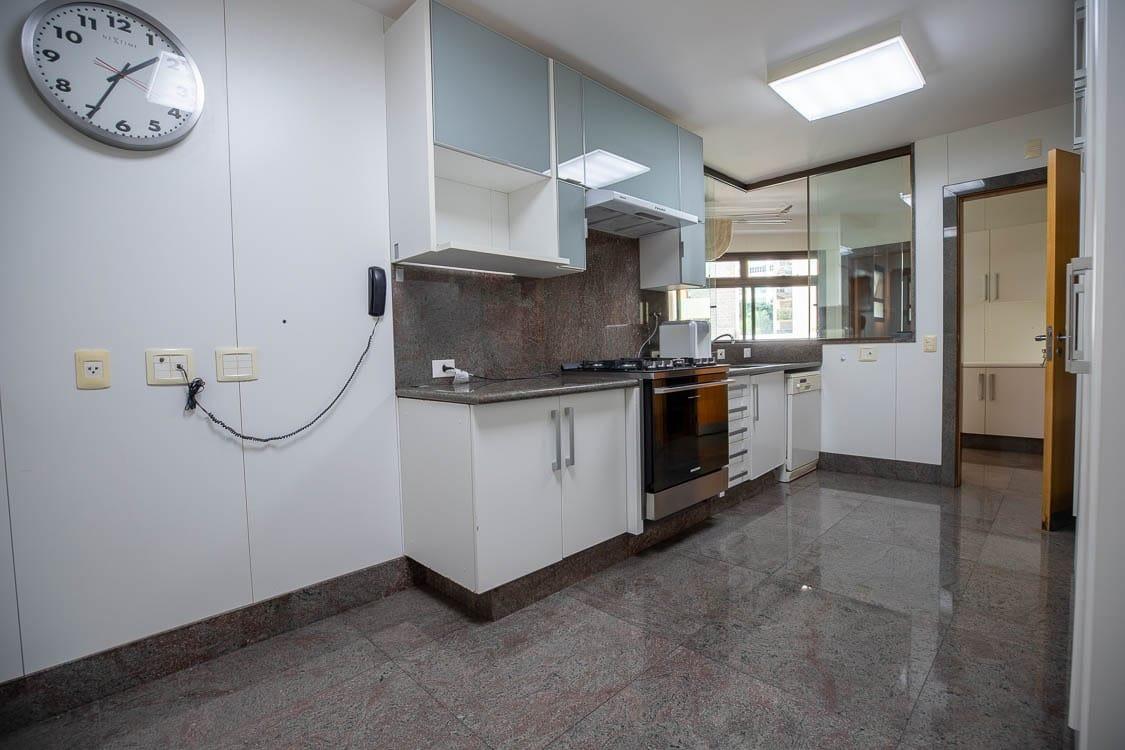APARTAMENTO: Apartamento com 186,08 m² de área interna, claro e arejado, salão para três ambientes amplos, varandão, lavabo, com piso em mármore, são 04 quartos, sendo 02 semi suítes com armários, uma suíte máster com amplo banheiro com armários, banheira de hidromassagem, armário e closet, todos os banhos com armários, box, espelhos, pisos e bancadas em granito, rouparia no corredor, copa cozinha com armários, fogão, coifa, área de serviço com armários e bancada para passar roupa com pisos frios em granito, dependência completa para empregada, aquecimento solar.