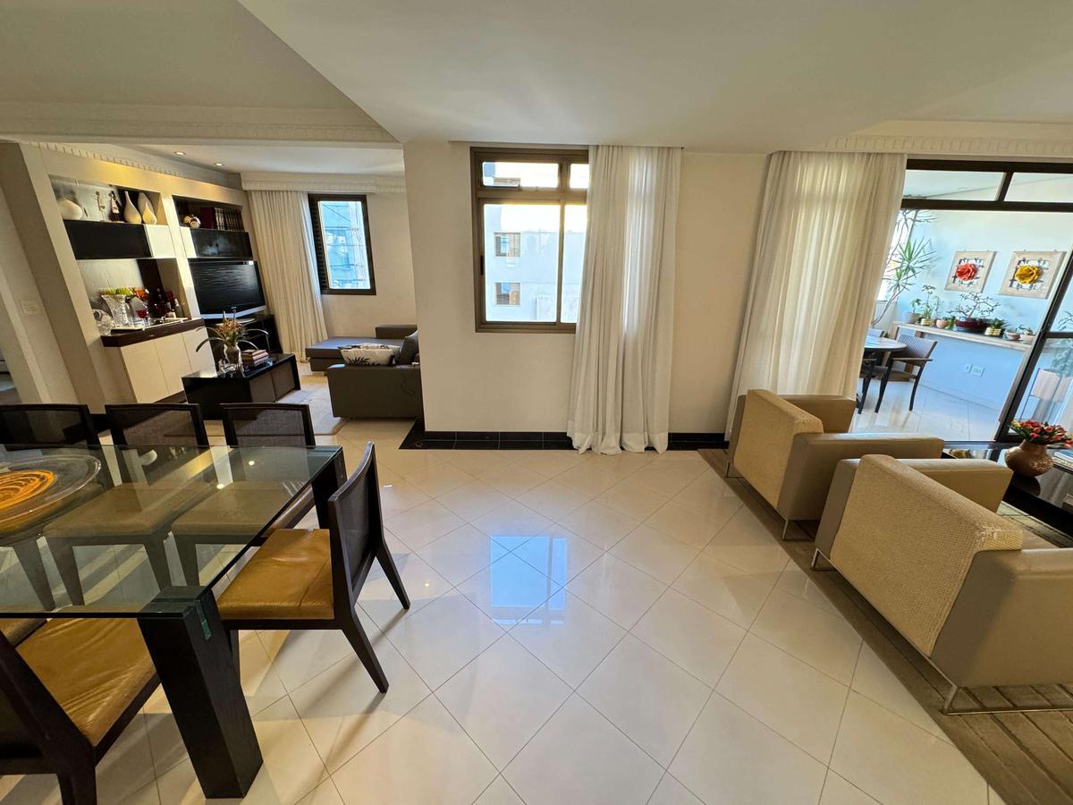 Maravilhoso apartamento à venda no Silveira com 146 m² e acabamento de alto padrão, composto por ampla sala para 03 ambientes com rebaixamento em gesso, iluminação planejada e piso em porcelanato, lavabo, 04 quartos amplos, transformado em 03 (fácil reversão) com armários planejados e piso em madeira, sendo 01 suíte, banho da suíte com bancada em granito, armário, sol durante a manhã e tarde, espelho, hidromassagem e box em blindex, cozinha com bancadas em granito e armários planejados, área de serviço independente e DCE.