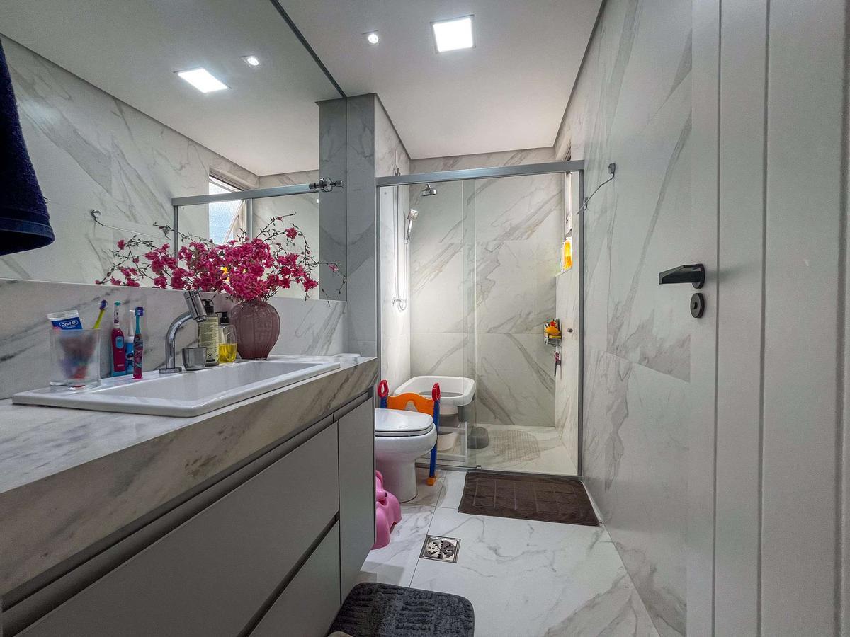 Banheiros: Todos com box, armários e espelhos.