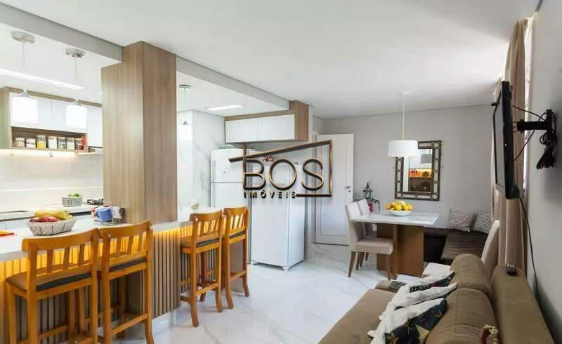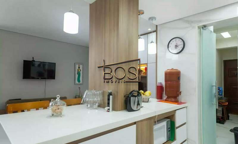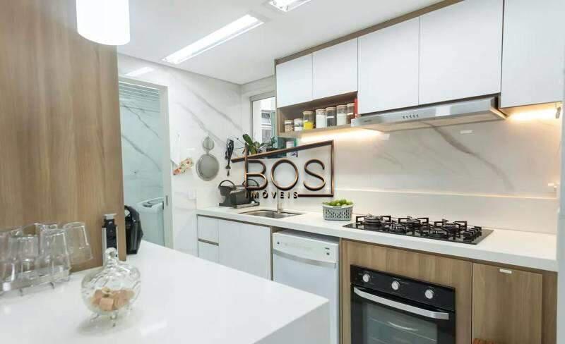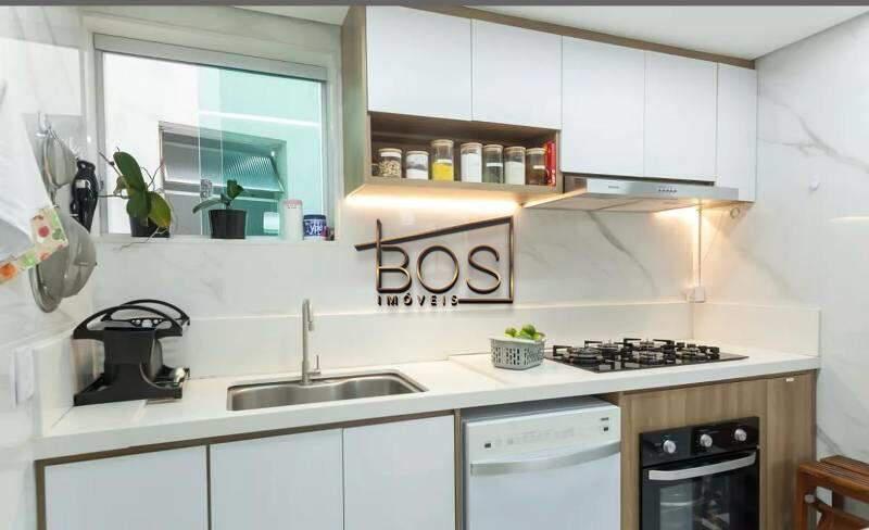 - Cozinha planejada, integrada com a sala, com piso em porcelanato