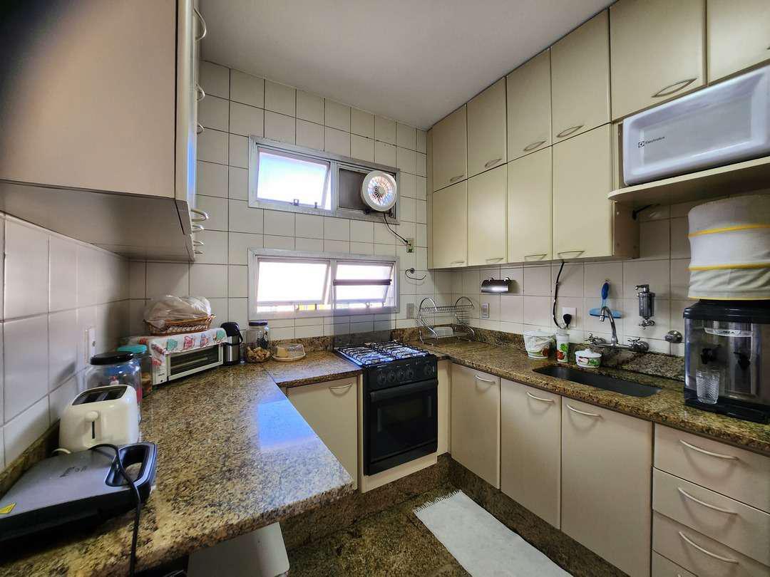 Cozinha Prática: Cozinha com armários planejados, bancada e piso em granito, com acabamento em cerâmica, oferecendo praticidade e organização.