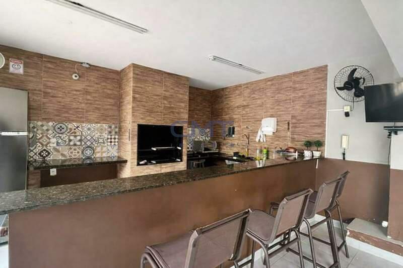 Excelente estrutura de lazer e segurança, com hall social decorado, salão de festas e jogos, playground, espaço gourmet com churrasqueira, quadra poliesportiva, piscinas adulto e infantil e sauna.