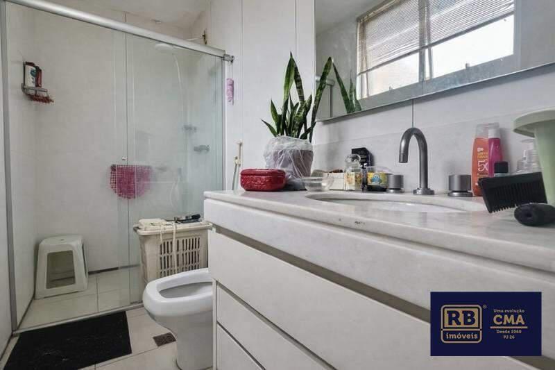 Banheiros (social e suíte) com ótimo acabamento, armários, espelhos e box em blindex.
