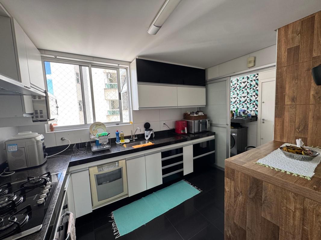 Cozinha espaçosa, rica em armários planejados, com piso em granito