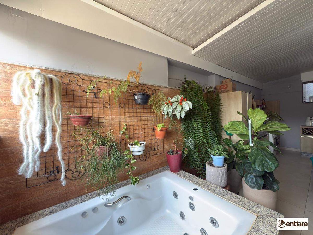 - Área externa privativa com telhado retrátil, armários planejados e banheira de hidromassagem;
