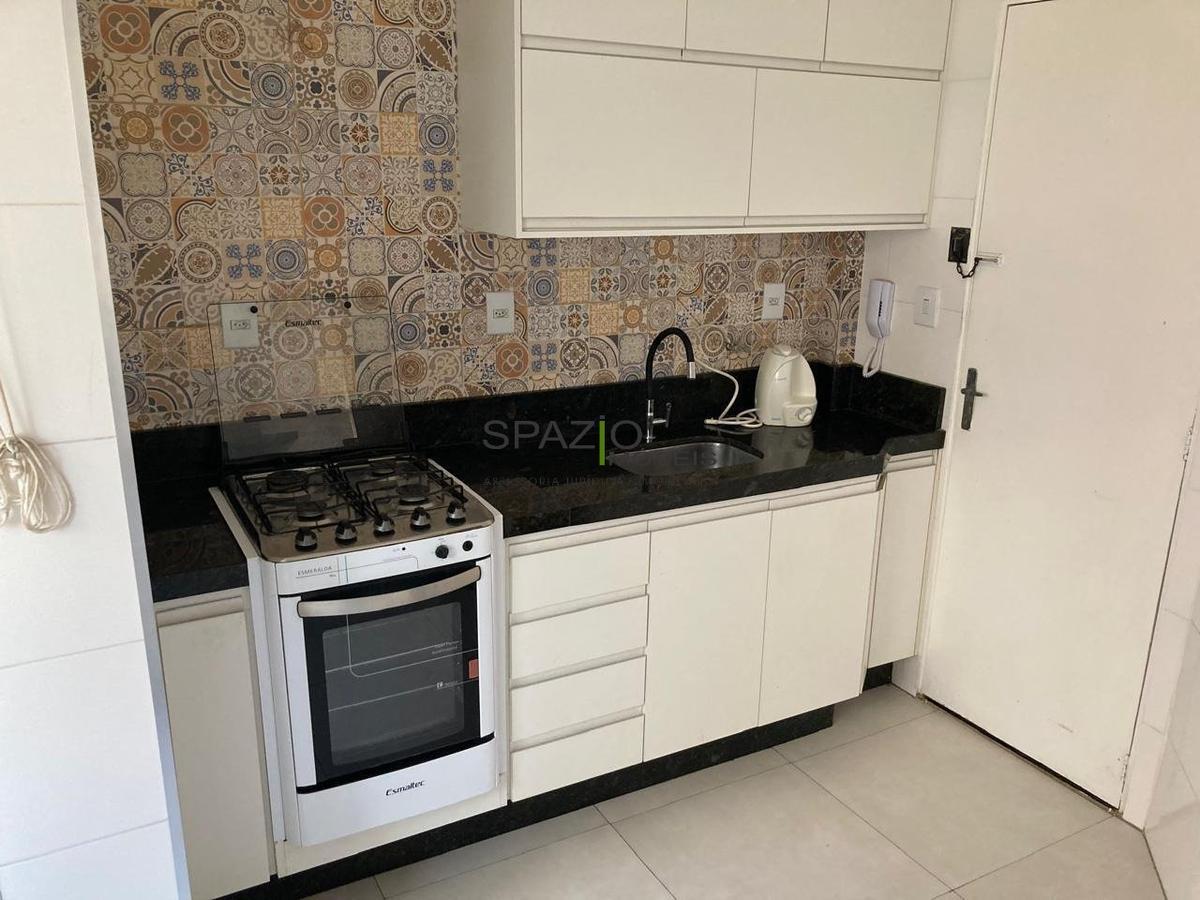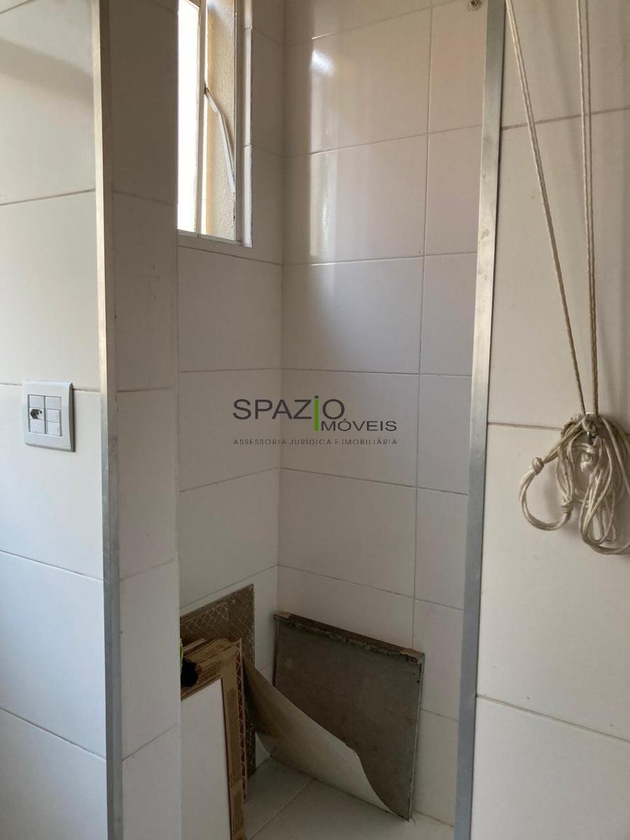 Apartamento de três quartos , sendo um reversível , sala ampla , banho social com armário e box, cozinha com armário, área de serviço e uma vaga de garagem.