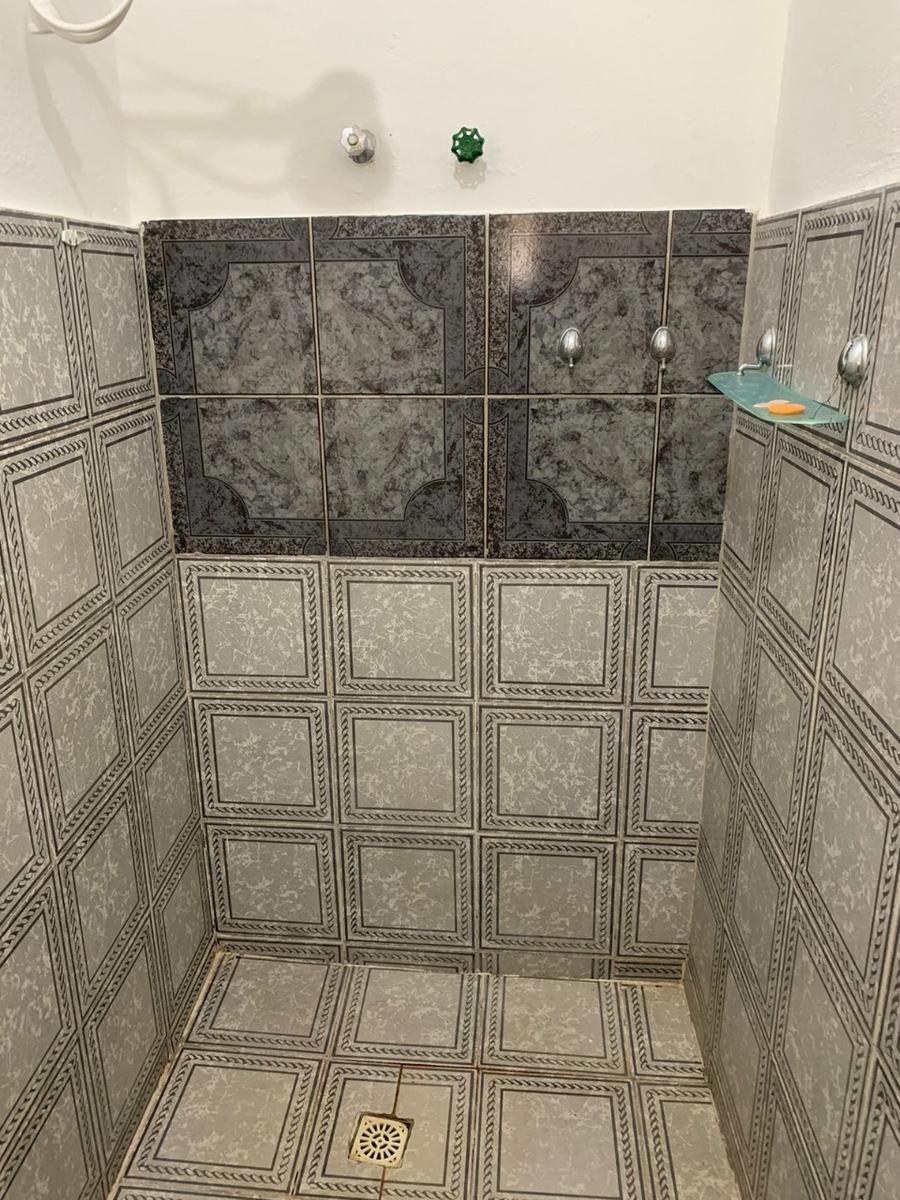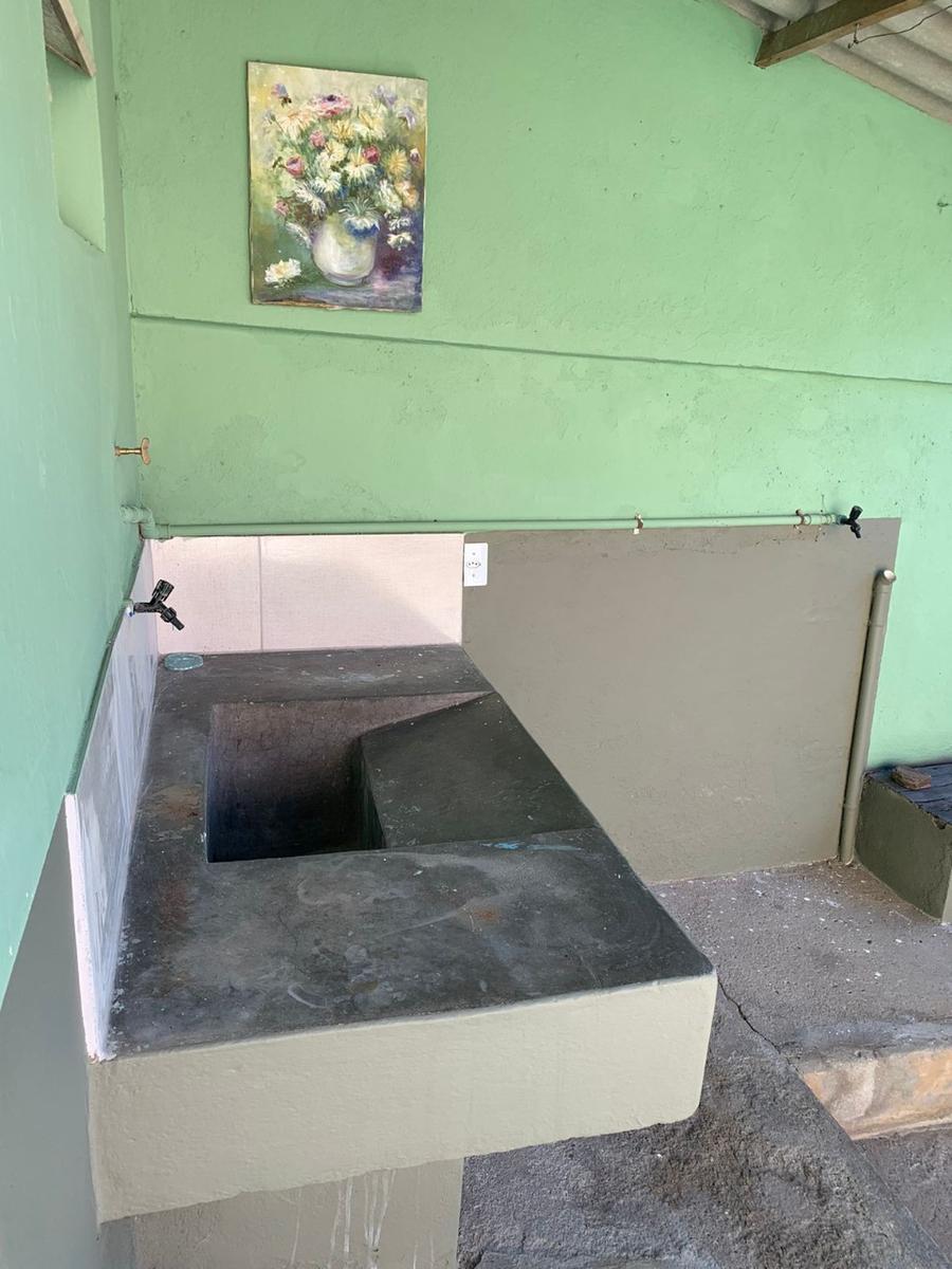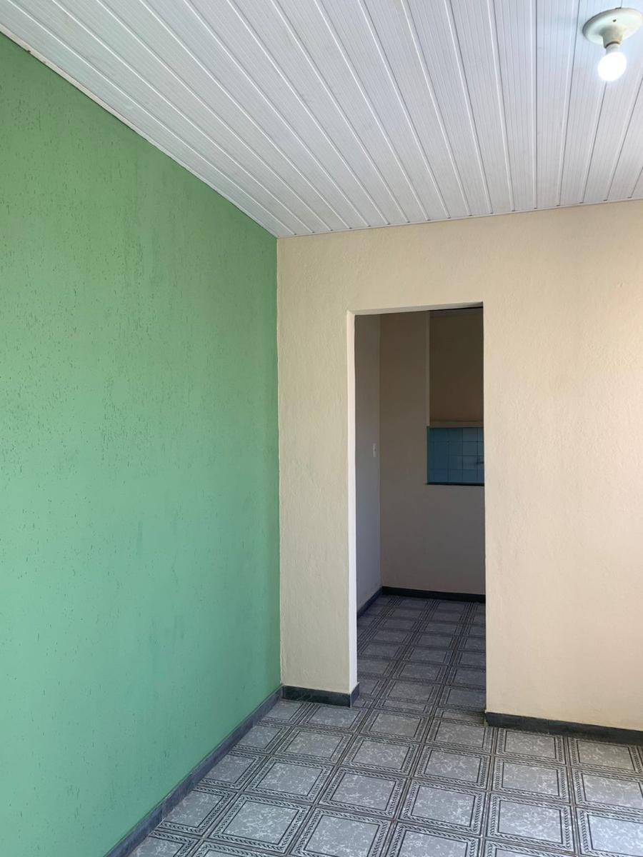 Barracão com 1 quarto, sala, cozinha, banho social, área de serviços, quintal na frente e 1 vaga de garagem em linha.