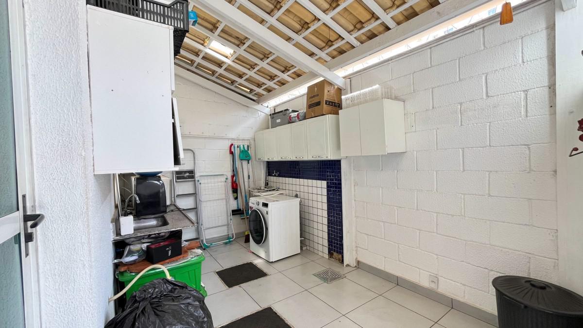 Área de serviço com bancada em granito e tanque;