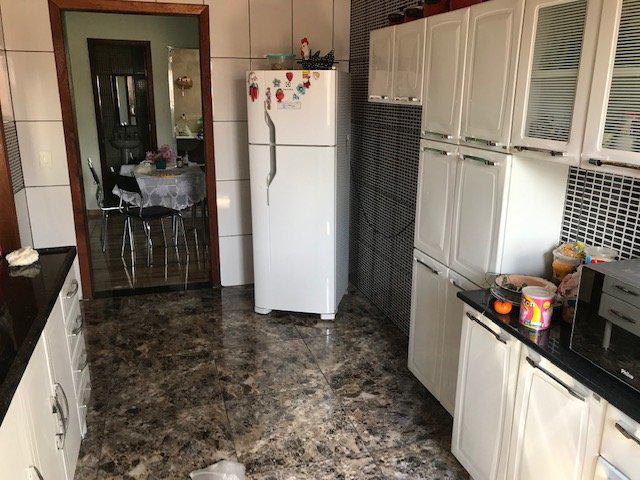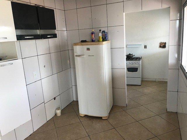 Cozinha ampla com 12m2, toda revestida em cerâmica, área de serviço ao lado com a mesma metragem.