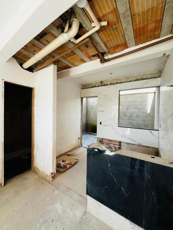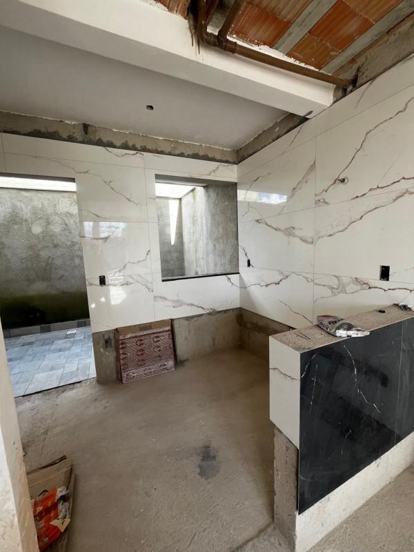 2º Pavimento: 2 quartos, banho social. Acabamento pisos em porcelanato, pia em granito, casa coberta com telhado colonial.