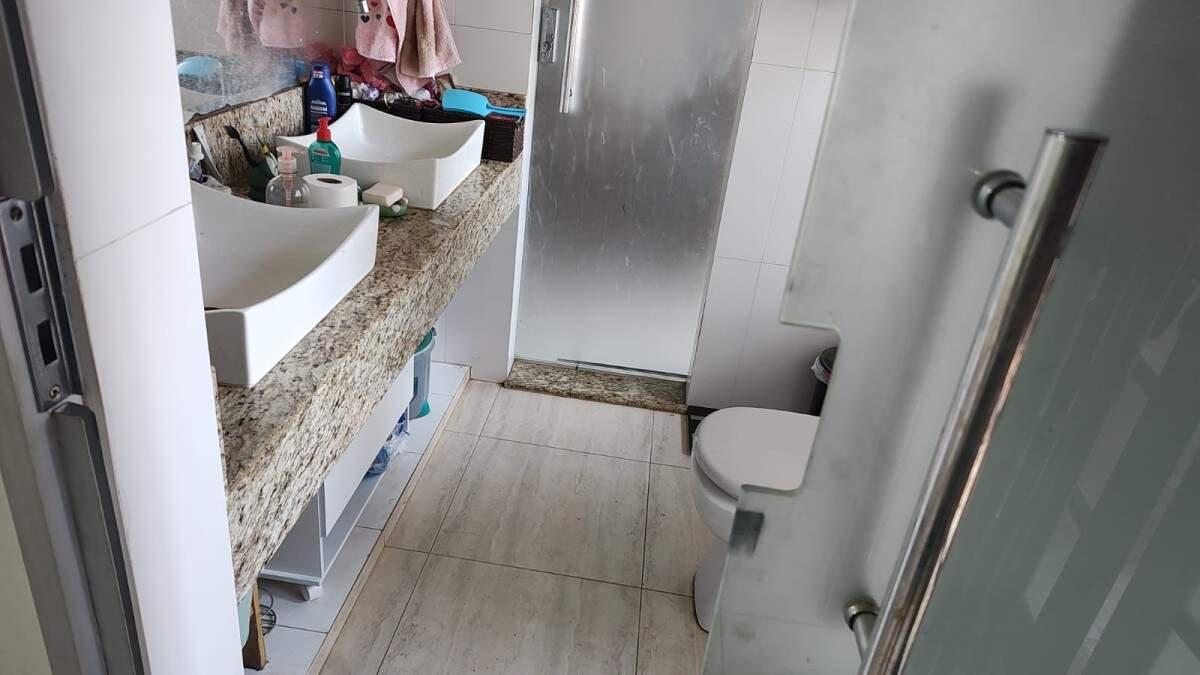 2 Pavimento:2 semi suítes, banheiro com 2 pias e 2 chuveiros. Também é uma banheira. Armários com portas de vidro temperado e varanda em ambos os quartos