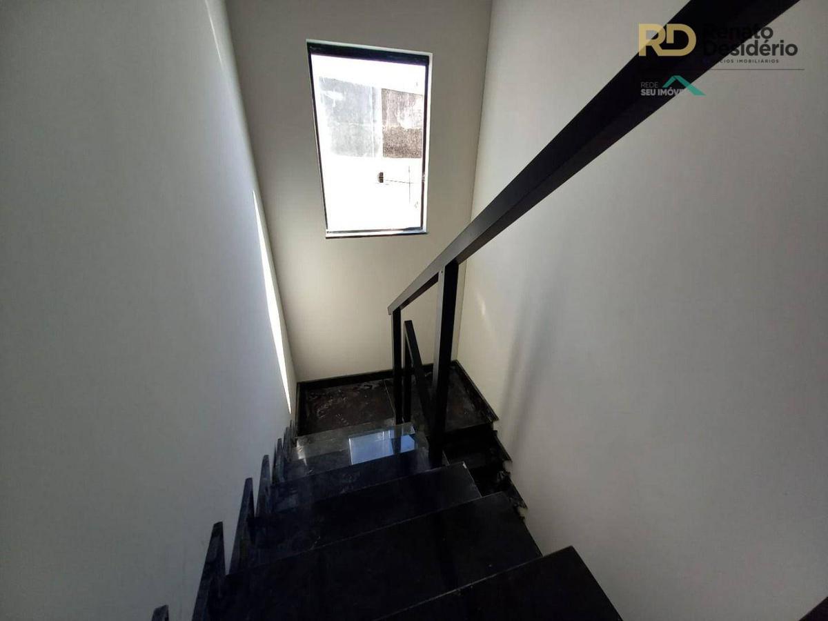 2º pavimento: 2 suítes amplas com piso em porcelanato, suite principal com varanda, banho das suítes com bancada em granito e box em blindex.