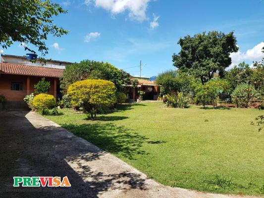 Lote de esquina com aproximadamente 980m2, todo murado, gramado, arborizado, com várias arvores frutíferas com uma pequena construção. casa composta por 01 sala, 02 quartos, cozinha e banheiro., varanda na frente construída nos fundos do terreno com frente toda livre. lado de fora tem outro quarto e banheiro - tem aproximadamente 90m² de área construída.
