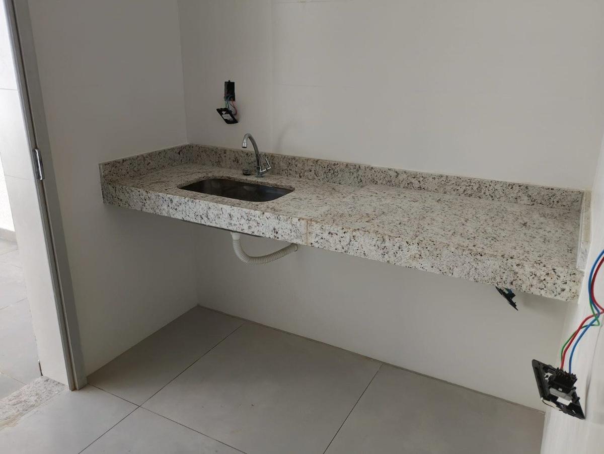 - Piso em porcelanato, bancadas esculpidas em granito e escada em granito. 58,87m² coberta e 60,56m² descoberta.
