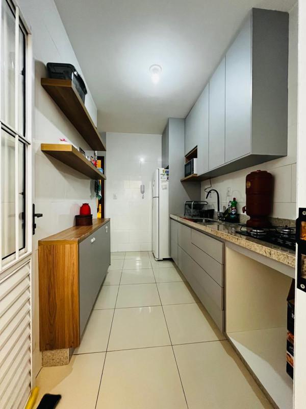 Casa linear, com 51,4m² de área construída e 10m², possui 02 áreas privativas, 02 quartos, banho social, sala, cozinha, área de serviço na área privativa coberta com telhado colonial, garagem coberta, geminada, em condomínio com entrada individual. Armário planejada, box em vidro blindex, pia em granito com cuba porcelana.