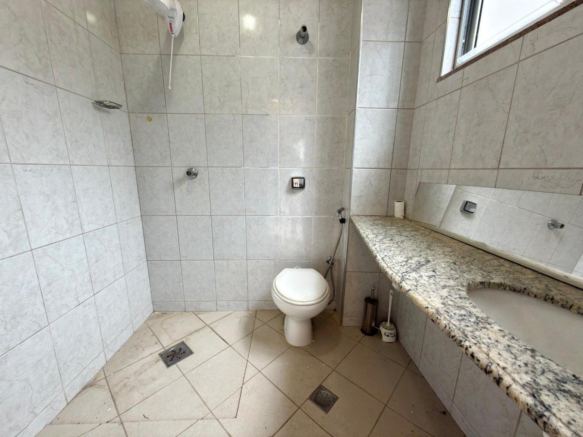 -Banho social com box, armário planejado, espelho e bancada em granito;