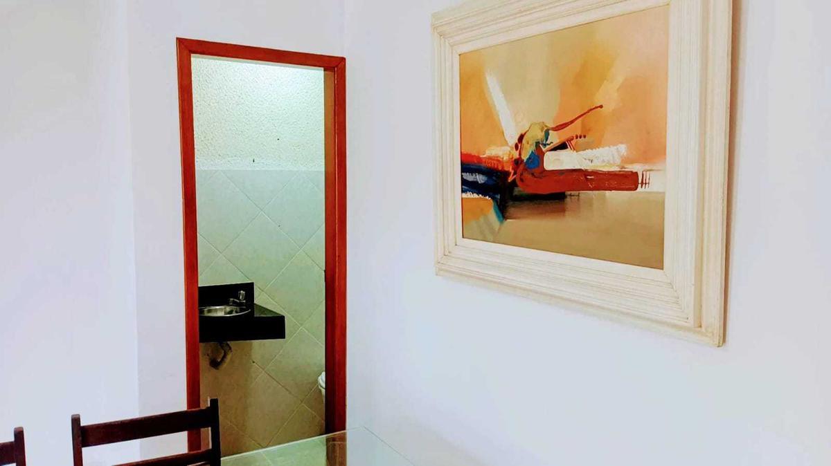 Ampla sala para dois ambientes com lavabo possuindo bancada em granito