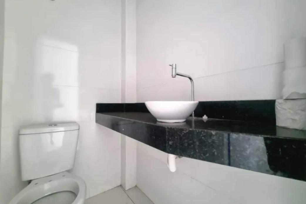 2º PISO COM ESCADA EM ALVENARIA, 2 QUARTOS, COM 1 SUITE EM CADA, COM BANCADA EM GRANITO E CUBA DE SOBREPOR, VARANDA EM UM DOS QUARTOS