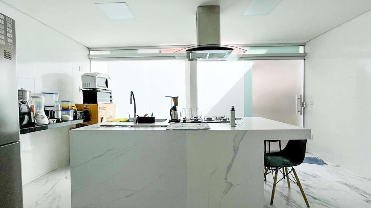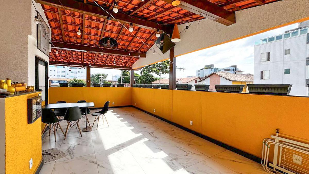 Espaçosa varanda com cozinha integrada ao ambiente, ideal para receber convidados.