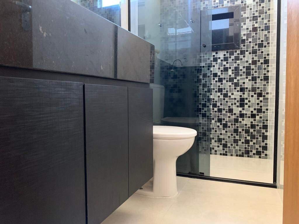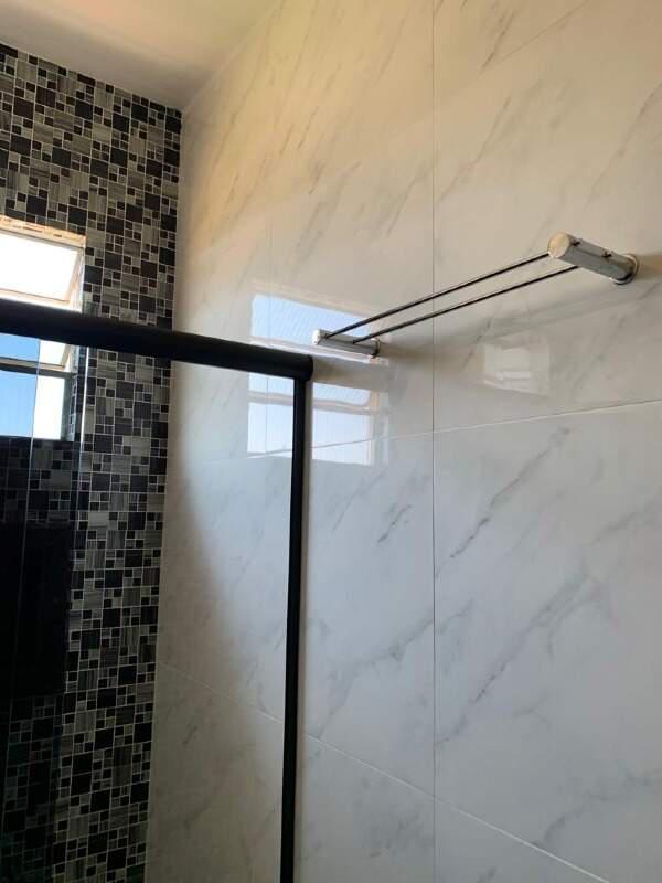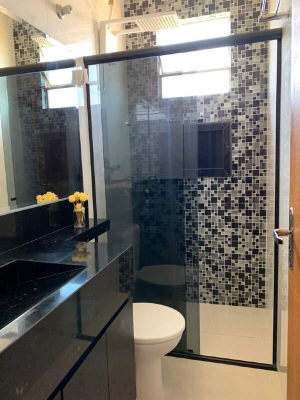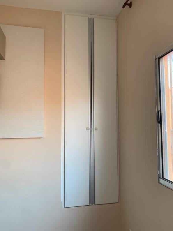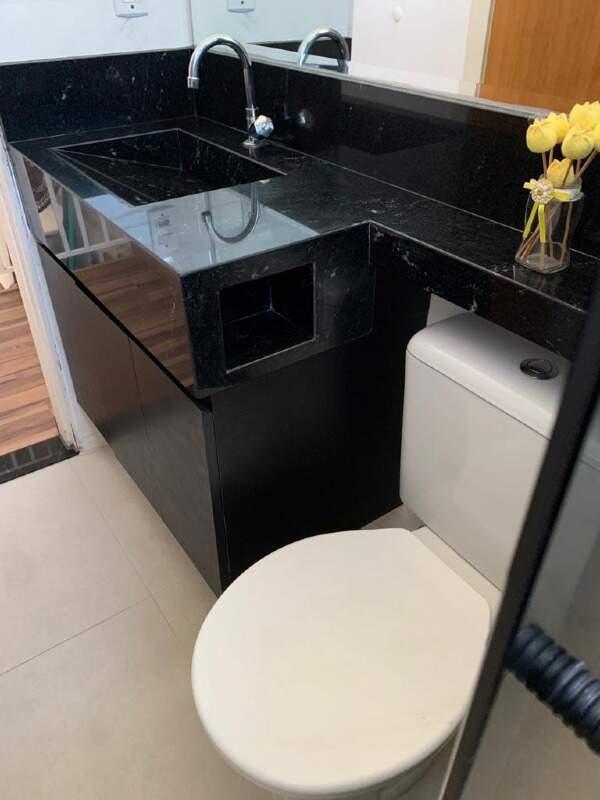 2 quartos, sendo 1 com armário planejado, pisos laminados, banho social com armário planejado e box, todo em porcelanato.