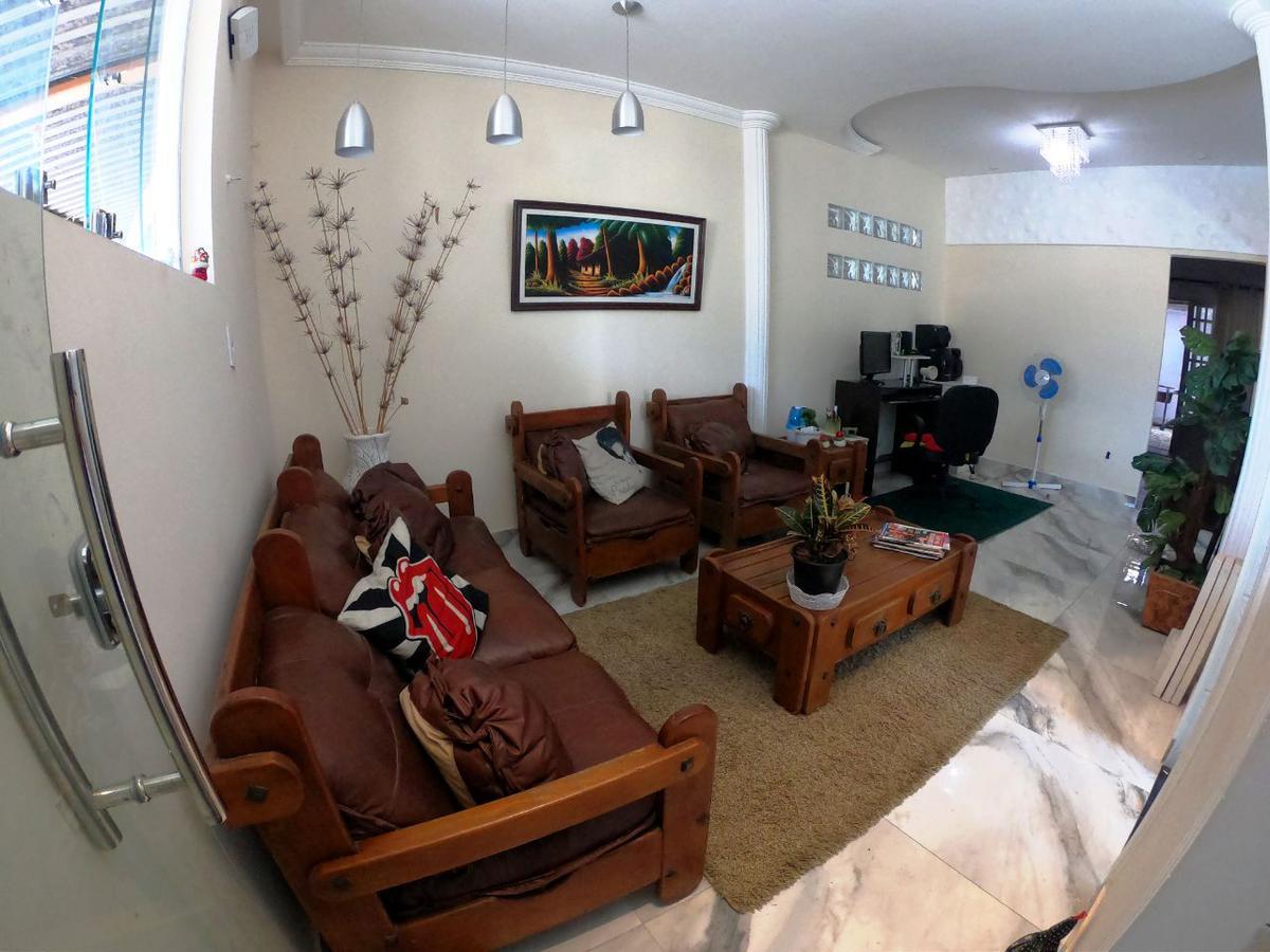 Excelente casa constituída de 02 quartos, 02 salas, 03 banheiros sociais sendo 01 com box blidex, cozinha c/ armários, área de lazer com piscina, área externa ampla, 04 vagas de garagem cobertas, bom acabamento com rebaixamento de gesso, lustres e piso em porcelanato, lote de 450 m². no lote ainda consta uma casa nos fundos com 45 m² constituída de 02 quartos, sala, cozinha, banheiro social e área de serviço. ótima localização, próximo a comércios, supermercados e linhas de ônibus.